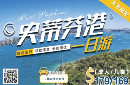 悉尼 ○ 1天 史蒂芬港 Port Stephen 一日游产品编号:01PS01-AC260325服务语言:中文導遊行程时长:一日游(含午餐)出发日期:天天出发接送服务:指定地点上车 -