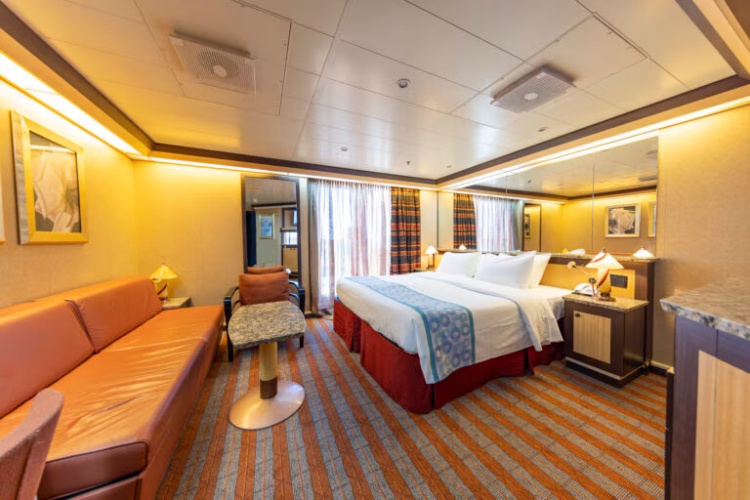 拥有面向船尾的环绕式阳台和您自己的日光躺椅,您有机会永远不想离开我们最大的客舱。套房内设有浴缸和步入式更衣区,您将享受专属套房优惠,包括优先办理入住和登机、用餐和下船。
