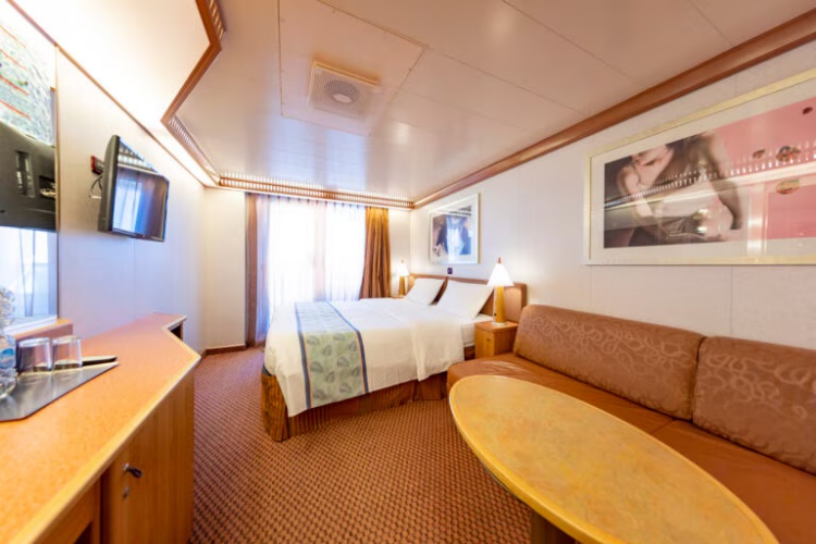 Carnival Luminosa 的加长阳台客房拥有额外的户外空间,这意味着您可以在个人日光浴躺椅上放松身心。里面也有足够的空间,阳光整天都透过落地窗照进来。