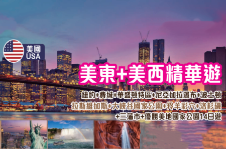 美国 ○ 14天 美東+美西精華遊产品编号:07AM14-PV240710