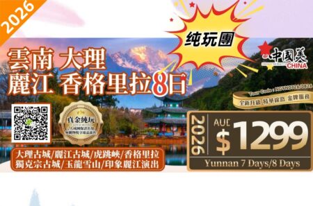 中国 ○ -8天7晚 雲南•昆明•大理•香格里拉•麗江•石林 (纯玩團2026)