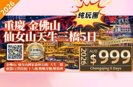 中国 ○ -5天4晚 山城重慶·金佛山·天生三桥(纯玩團 2026)产品编号:07CN05-BC/NGCQ0526