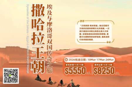 行程时长:15天14晚出发日期:2026年3月10、17、24日抵达城市:開羅 (埃及)离开城市:卡薩布蘭卡(摩洛哥)服务语言:中文導遊