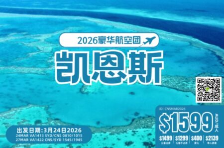 凯恩斯 ○ 豪華4日航空團 (2026-03-24 悉尼出发 含机票)