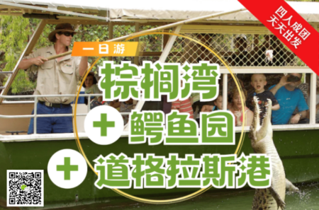 凯恩斯 ○ 1天 棕榈湾+鳄鱼园+道格拉斯港产品编号:01CN01-ZT260201服务语言:中文導遊行程时长:1日出发日期:4人成团 天天出发接送服务:凯恩斯部分酒店(请咨询客服) -