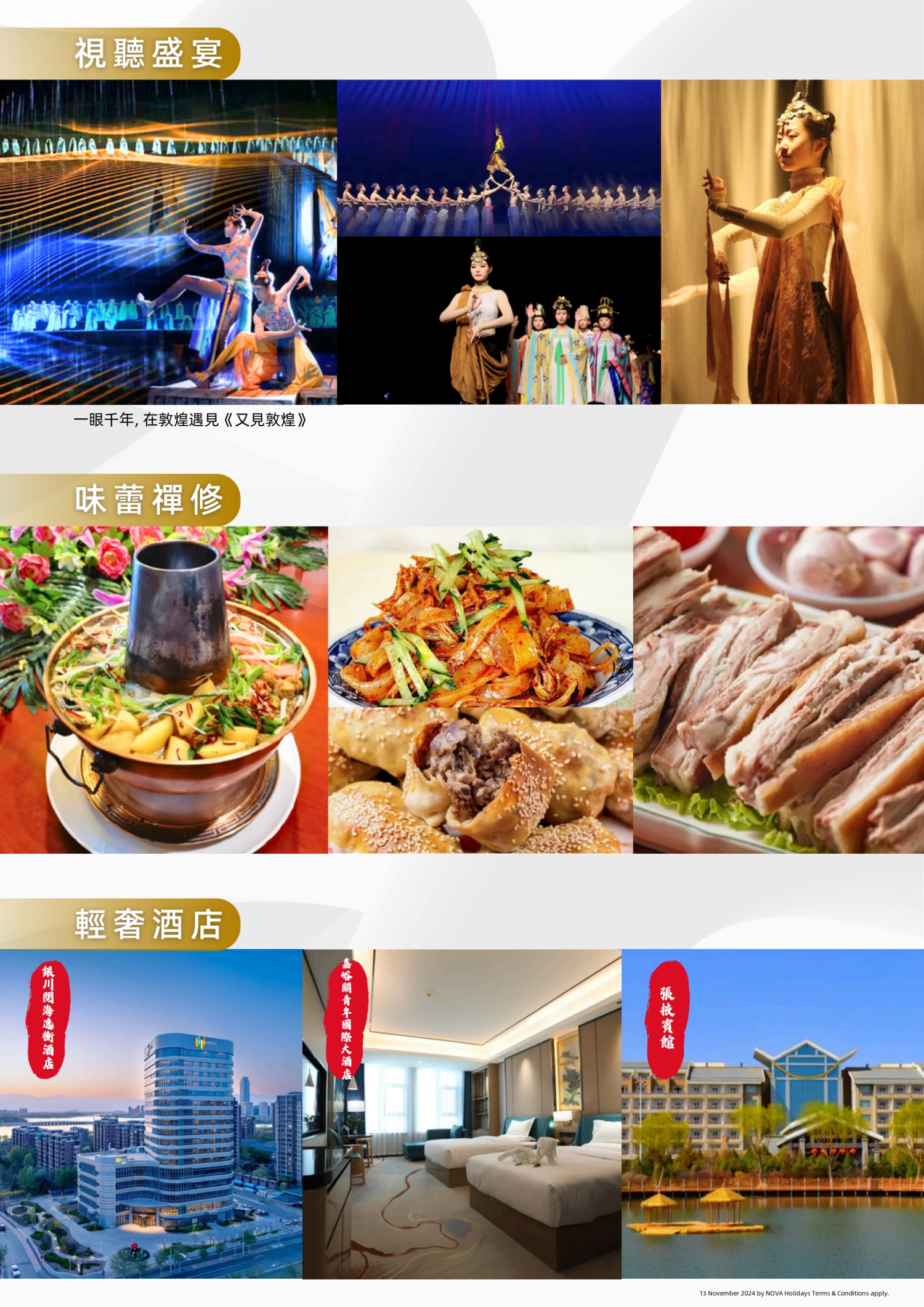 - 12晚4-5星酒店含1晚沙漠帐篷酒店 (如遇旺季房滿, 安排入住中衛市區4星酒店)