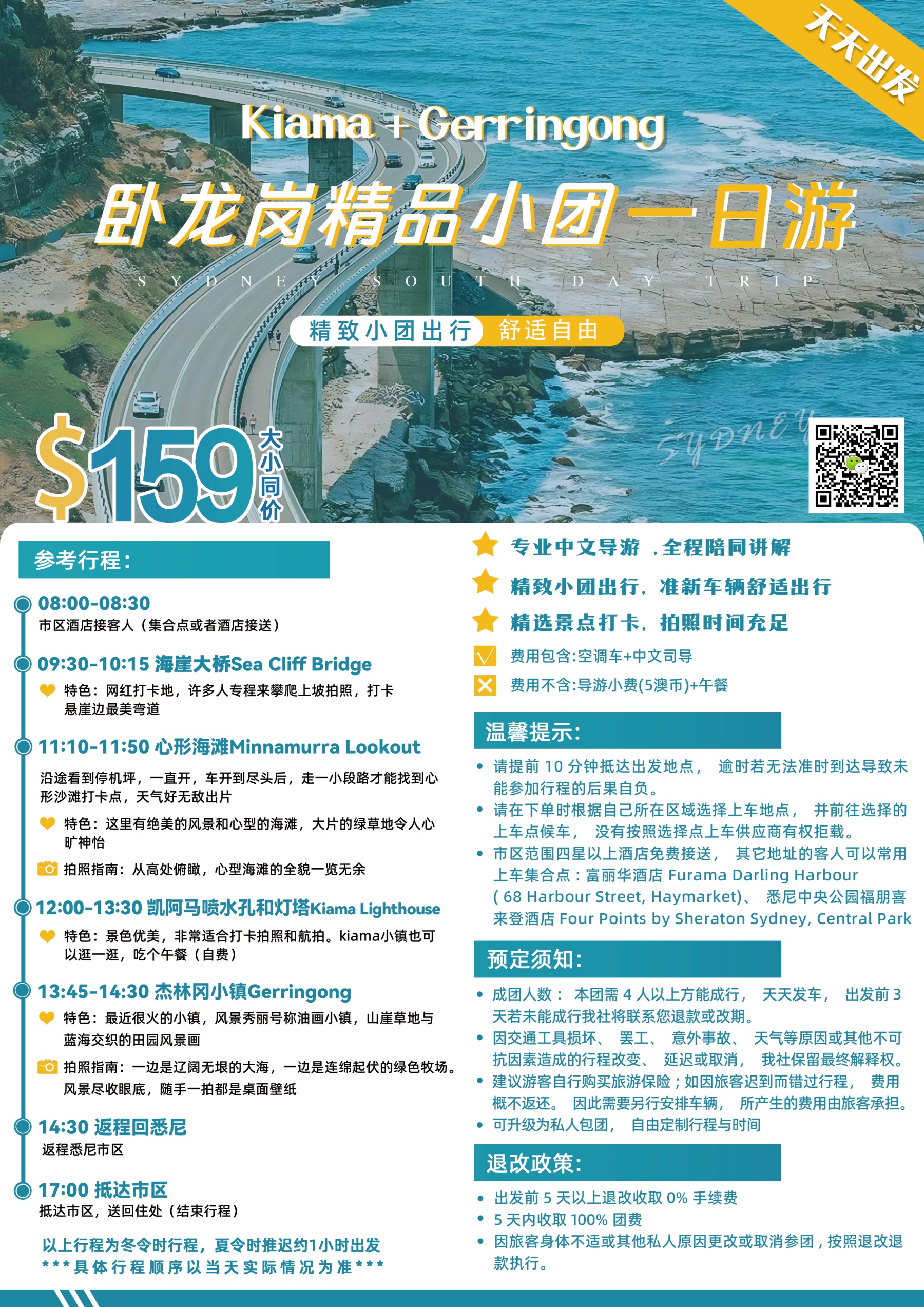 - 10:05~10:35 海崖大桥Sea Cliff Bridge: 网红打卡地,徒步上桥拍照,打卡悬崖边最美弯道