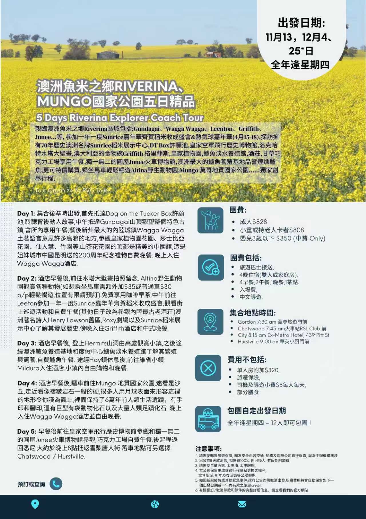 悉尼 ○ 5天4晚 澳洲鱼米之鄉Riverina /Mungo國家公園精品遊