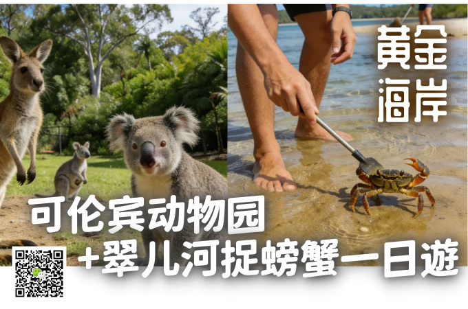 D4 昆士蘭新州邊界碑> 佈倫瑞克黑茲鎮> 黃金海岸市區遊> 漁人碼頭 fish market> 衝浪天堂> 電影世界/海洋世界 (包接送不含門票)