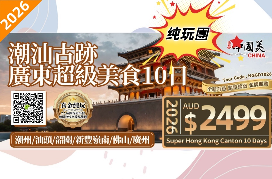 - 本行程只接受美加澳新等國華人華儒参團,僅提供中文導游服務。