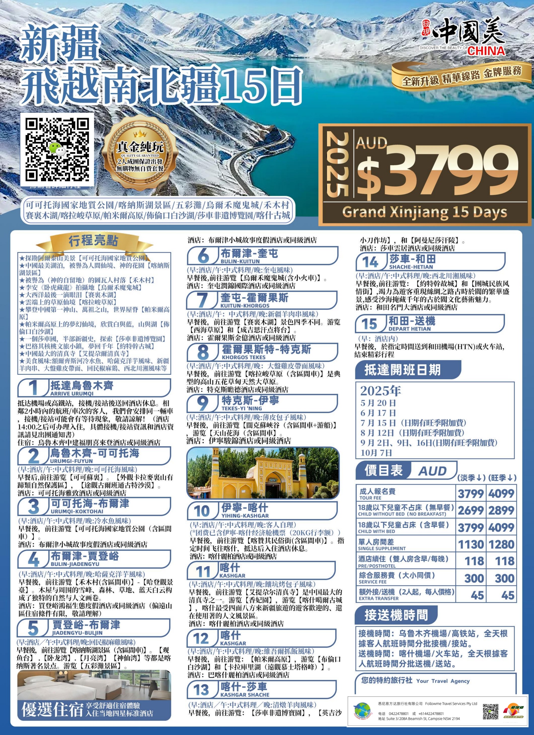 - 抵达城市和接机资讯:乌鲁木齐機場/高铁站,全天根據客人航班時間分批接機/接站。