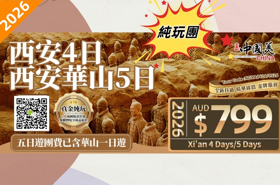 - 【繽紛景點】秦始皇兵馬俑博物館+大雁塔北廣場+大唐不夜城+西安古城牆+書院門仿古街+回民街+鐘鼓樓廣場+“奇險天下第一山”華山