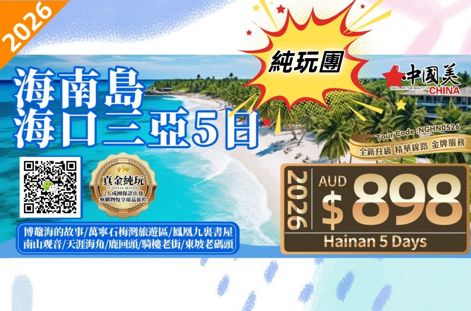 - 【繽紛景點】南山佛教文化旅遊區、天涯海角、鹿回頭、萬寧石梅灣旅遊區、博鼇風景區。