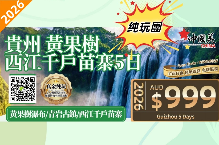 - 【繽紛景點】世界屯兵文化的奇葩【青岩古鎮】。亞洲最大之【黃果樹瀑布】恢宏氣勢。世界之最 世界最大【西江千戶苗寨】,欣賞傳統舞蹈、聆聽原生態的苗歌,俯看神奇壯觀的千戶苗族山寨。