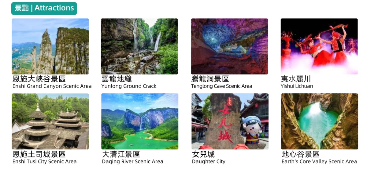 D4 恩施— 恩施大清江— 女兒城(100km車程1.5h) ENSHI – ENSHIDAQINGJIANG – NVERCHENG