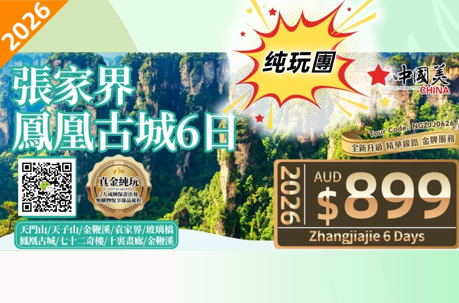 中国 ○ -6天5晚 張家界•鳳凰古城 (纯玩團 2026)