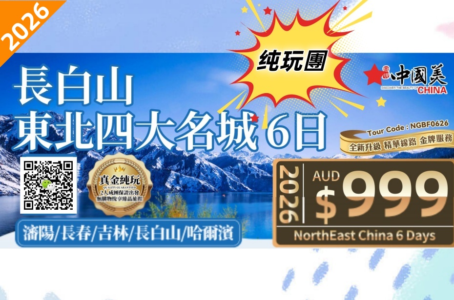 - 【特别安排】瀋陽、長春、吉林、哈爾濱四大名城+長白山