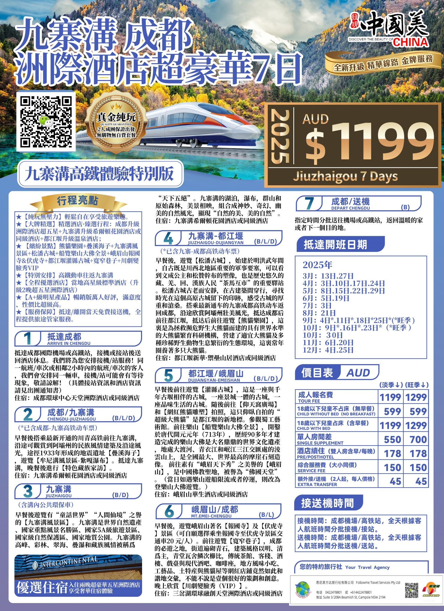 (*已含九寨溝-成都高铁动車票)