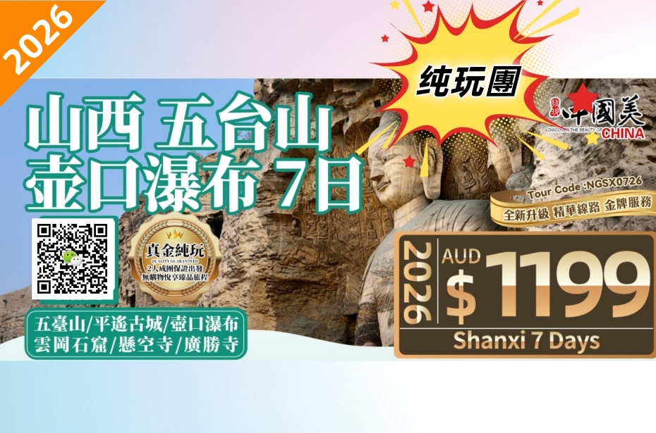 早餐後,前往中國的一座佛教寺院【廣勝寺】,它是國家AAAA級景區,也是央視86版《西遊記》中《掃塔辯奇冤》唐僧掃塔的取景地。霍泉亦發源於此地,寺區古柏蒼翠,山清水秀。隨後返回太原,途中遊覽【王家大院】,王家大院的規模和氣勢在晉商宅院裏首屈一指,其建築和文化上的成就斐然,素來有“王家歸來不看院”的美譽。