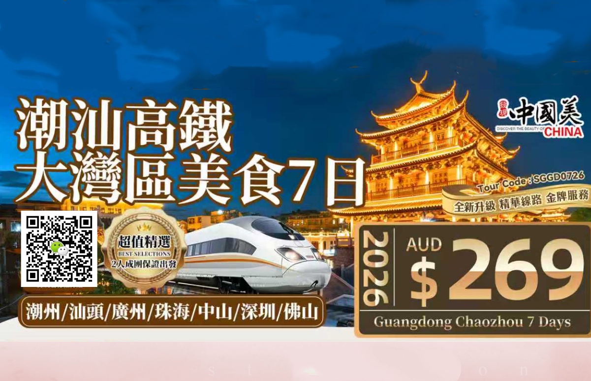 早餐後,前往有中國金玉之鄉美譽的揭陽,遊覽【揭陽樓】,是揭陽曆史跨越的雄偉地標、強勢發展的城市靈魂— 整體協調,富有創意,飽含特色,輝煌氣魄!參觀珠寶鑒定會所,品嘗潮汕小點心+工夫茶。午餐返回汕頭,遊覽【汕頭小公園】是汕頭老市區的商業中心和文化中心。小公園片區基本仿造巴黎街區樣式馬路邊避雨的“騎樓”、鱗次櫛比的店鋪、略顯蕪雜的街道,以及門窗附近古樸的裝飾花紋,都無不透露著汕頭老城獨特的歷史風情。參觀【中山亭】【郵政總局】【老媽宮】,自费品嘗非遺手打魚丸等当地小吃。
