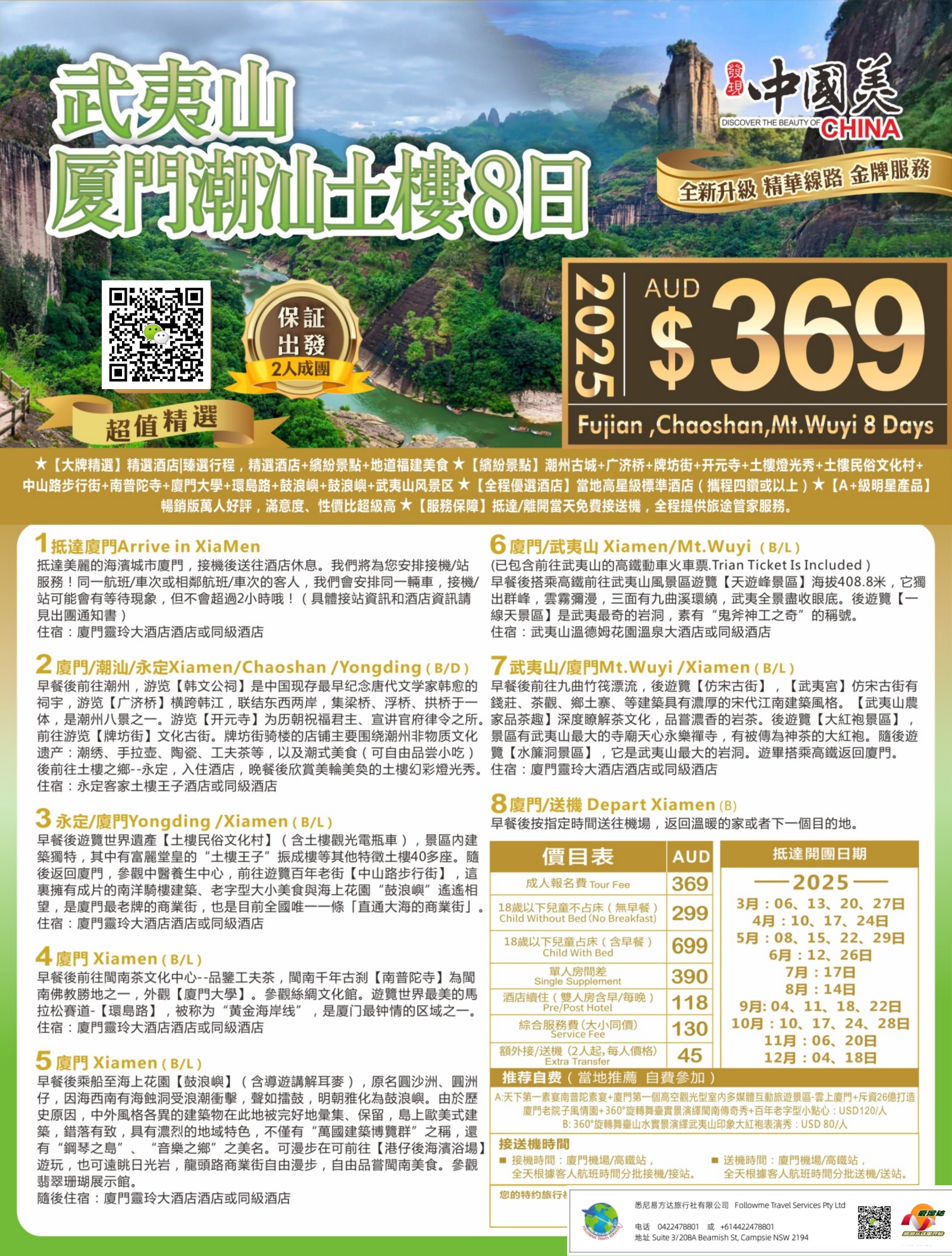 成人报名费Tour Fee:A$ 369