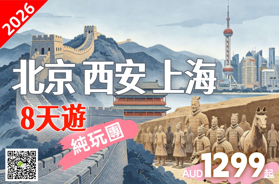 ✔ 费用包含:行程所列酒店標準間、餐膳、豪華旅遊巴士、專業中文導遊、北京- 西安高鐵動車火車票或者机票、西安-上海单程经济舱机票