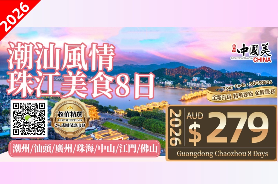 中国 ○ -8天7晚 潮汕風情•珠江美食遊(2026)