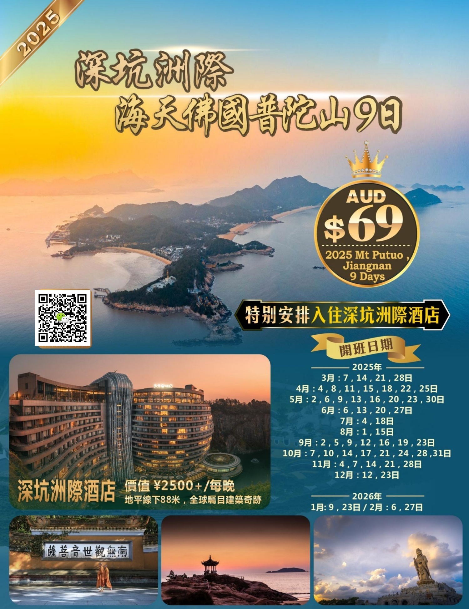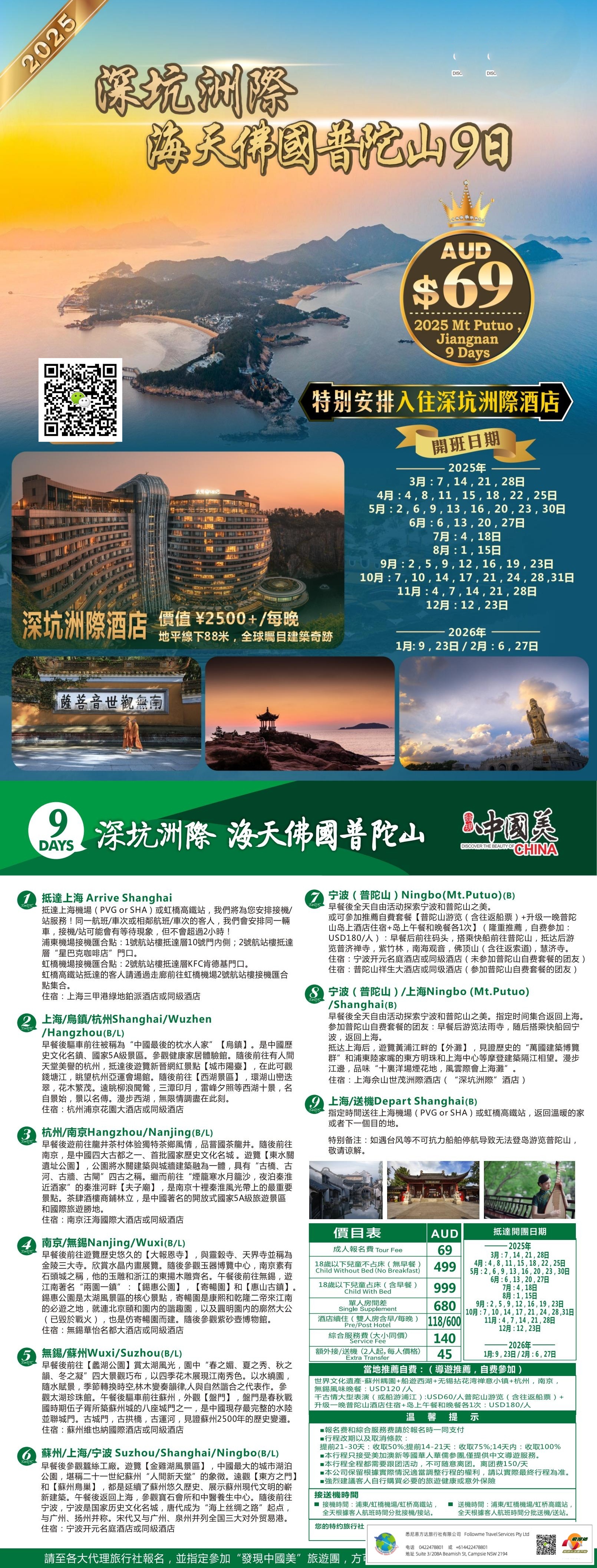 中国 ○ -9天8晚 海天佛國 江南普陀山