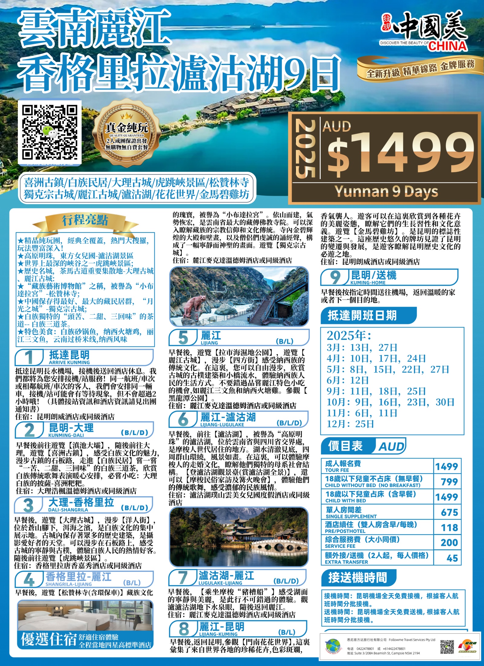 - 成人报名费 Tour Fee: $1499