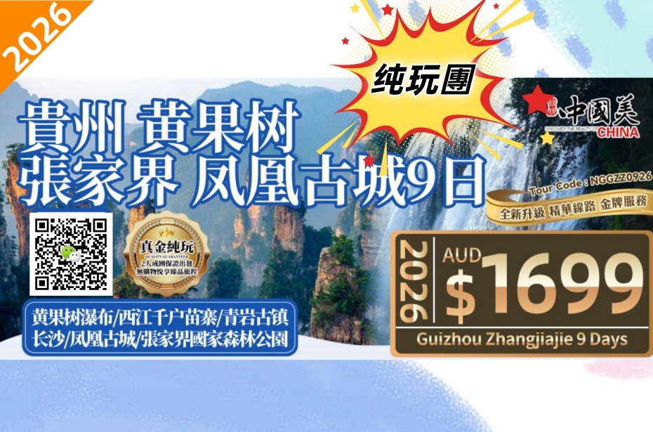 中国 ○ -9天8晚 贵州•凤凰•张家界(纯玩團 2026)