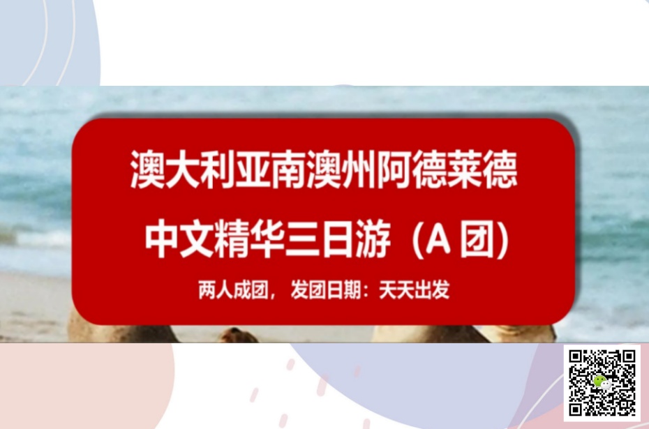(当天费用已包括: 来回渡轮船和旅游车、海豹湾门票、弗林德斯狩猎国家公园门票、英文团含午餐)