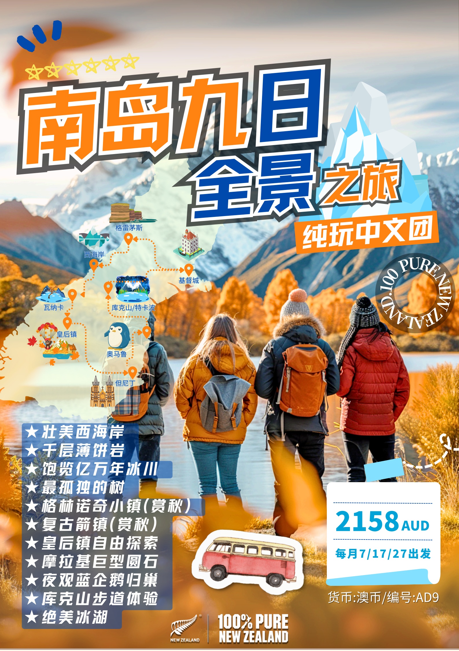 - 如需在基督城延住一晚的客人可加购酒店+机场小巴送机:参考价格: 3-4星双人标间AUD250/房/晚含早餐。