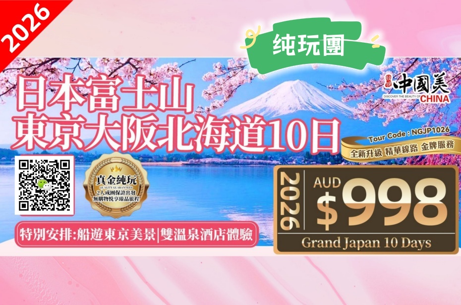 日本 ○ 10天9晚 东京·富士山·大阪·北海道 (纯玩)