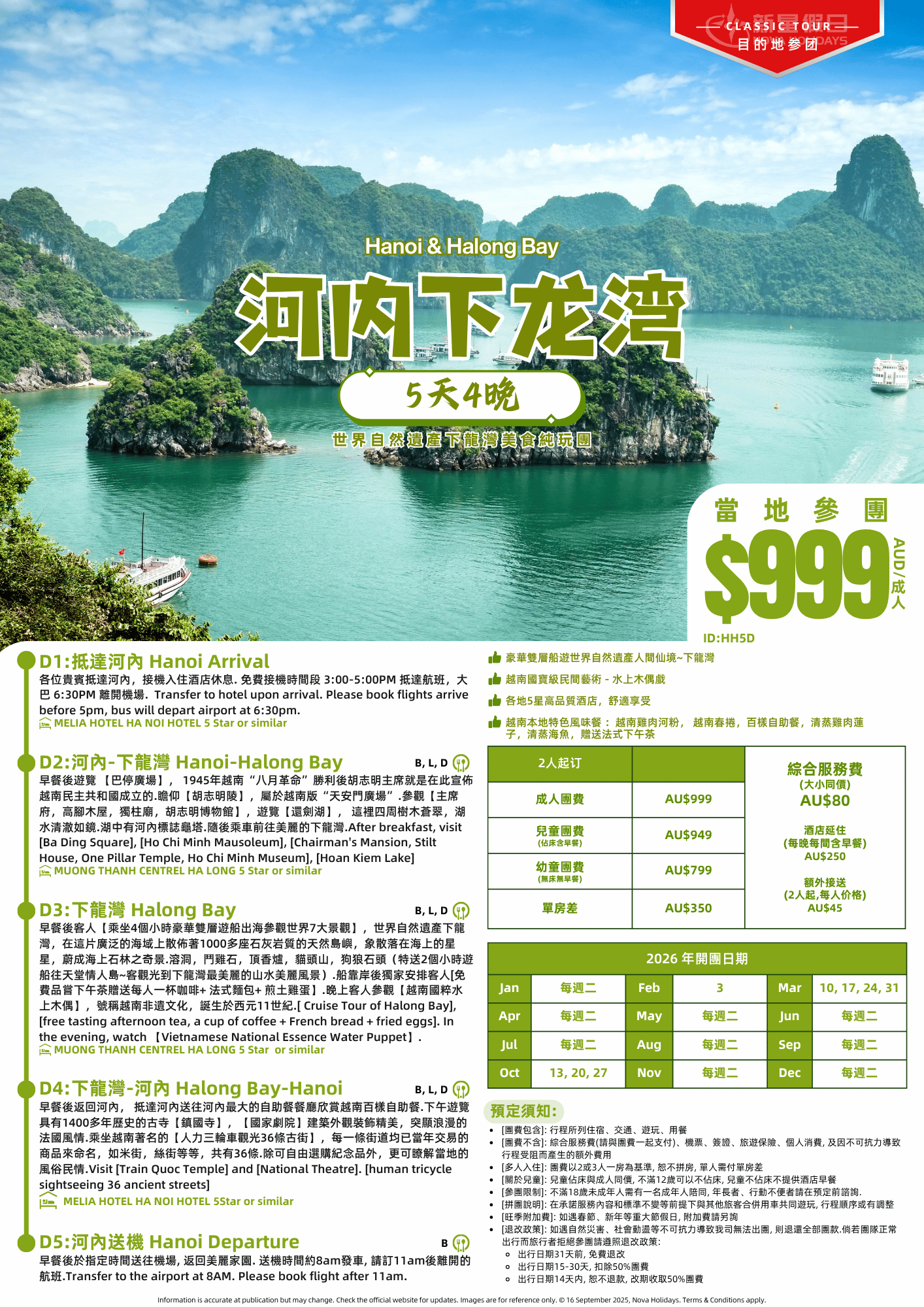 5. [旺季附加費]: 如遇春節、新年等重大節假日, 附加費請另詢