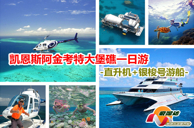 凯恩斯阿金考特大堡礁一日游(银梭号游船 +直升机)