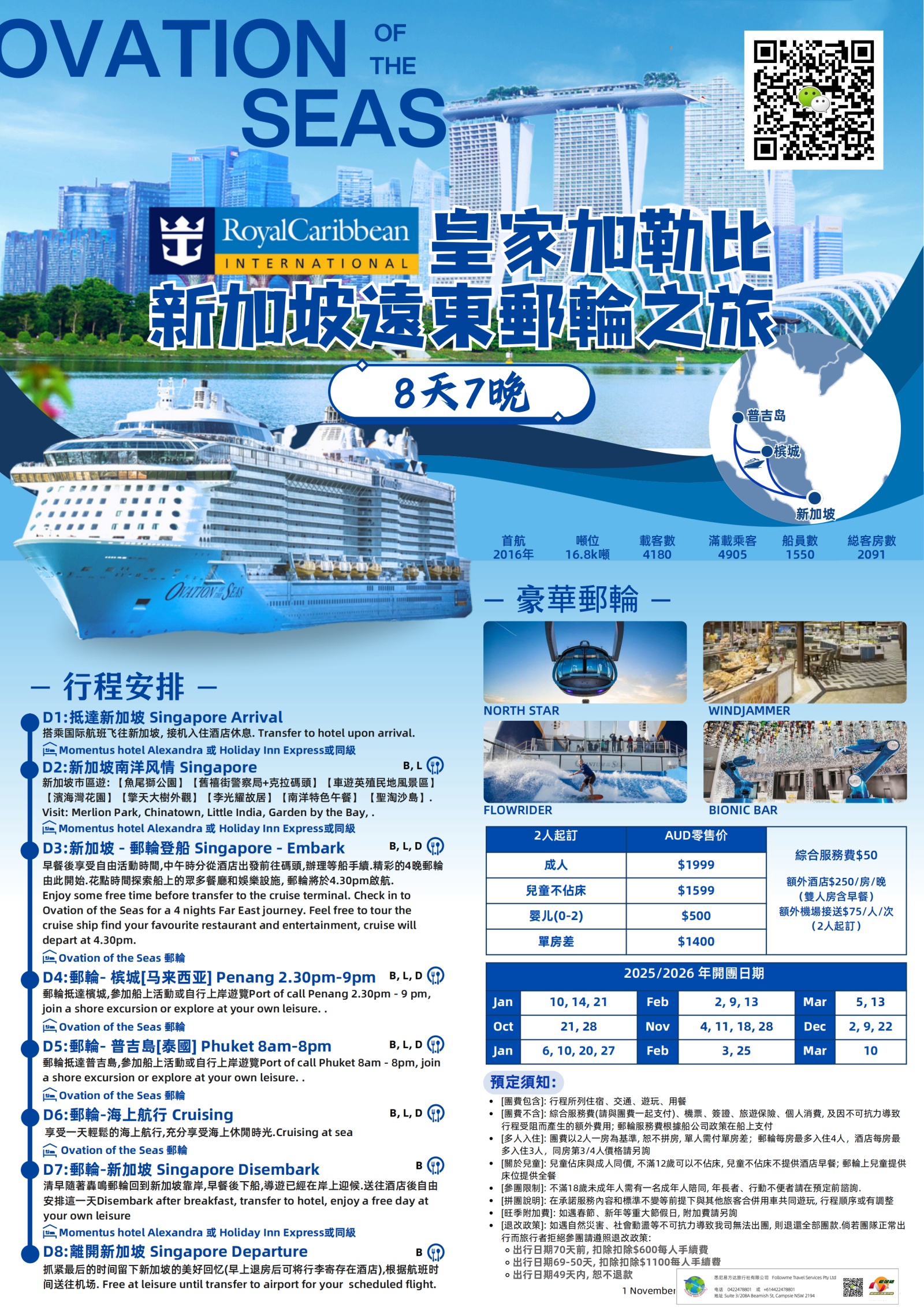 2025-10-28 皇家加勒比 ○ 新加坡遠東郵輪之旅8天7晚