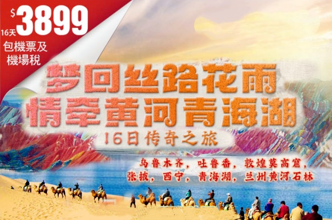 - 景点门票: 天山天池含区间车+交河故城含区间车+坎儿井+鸣沙山含骑骆驼单程电瓶车+莫高窟+玉门关区间车+雅丹魔鬼城含区间车+又见敦煌+嘉峪关城楼含电瓶车+丹霞地貌含区间车+大佛寺+塔尔寺含区间讲解+青海湖、游船含电瓶车+茶卡盐湖含往返小火车+黄河石林景区+电瓶车+驴车+游船或羊皮筏子、刘家峡快艇、炳灵寺