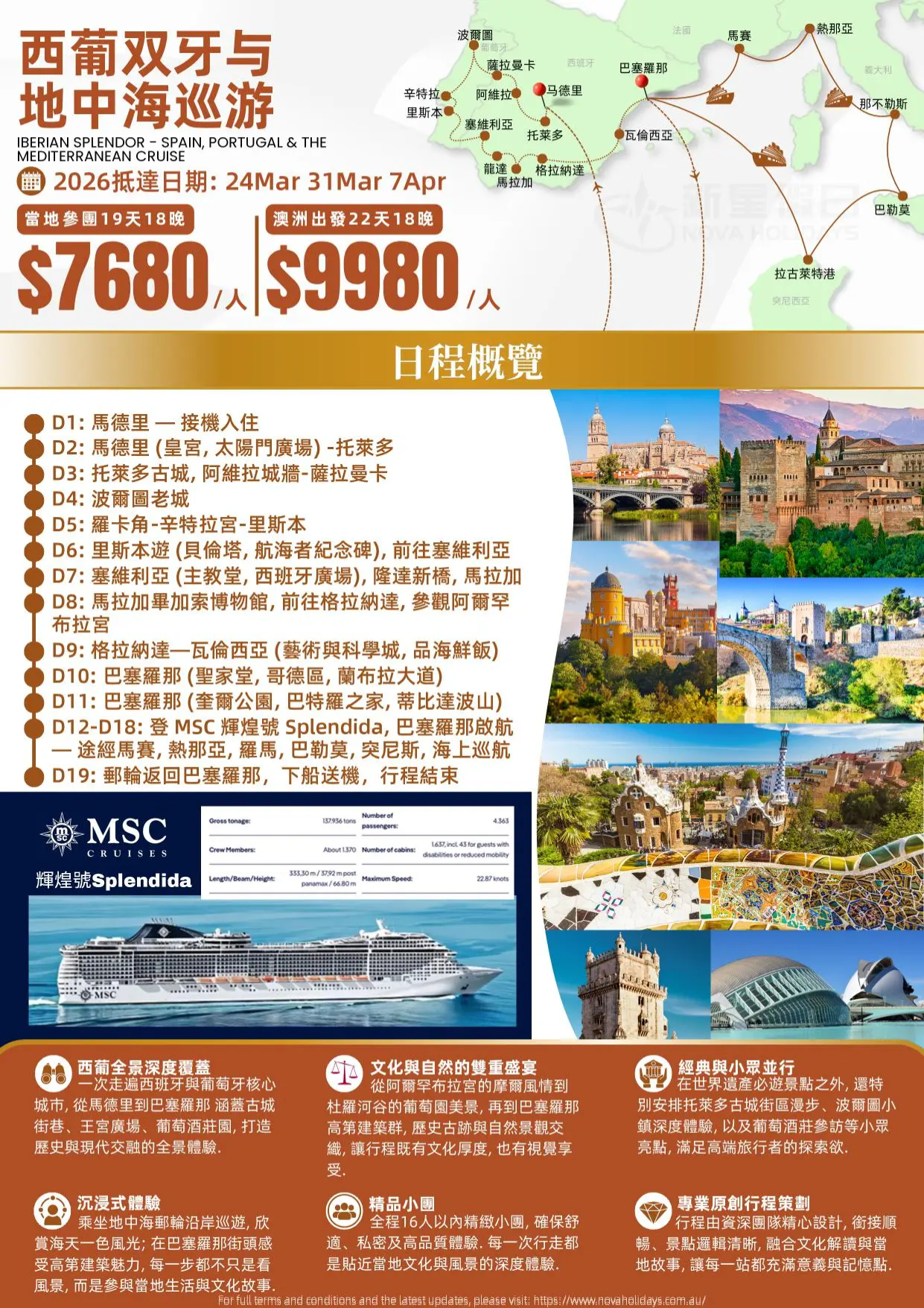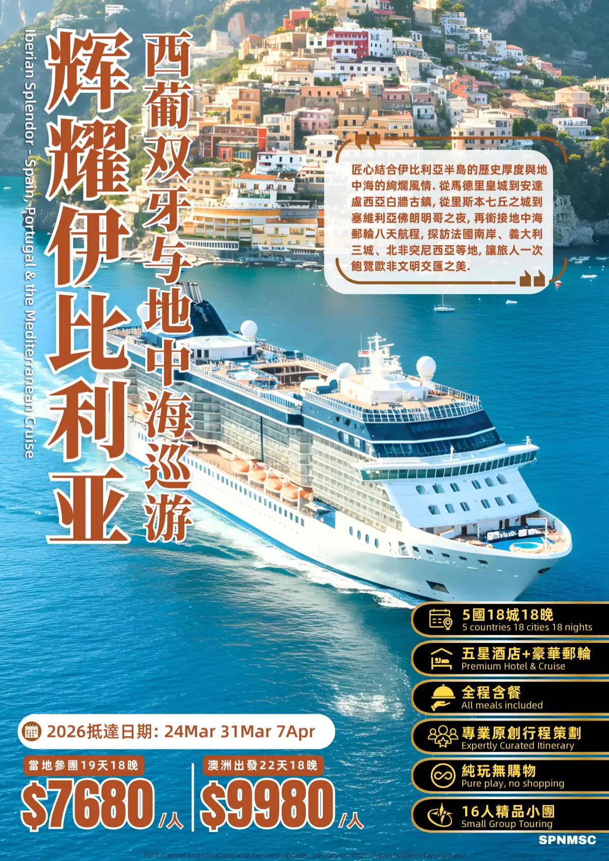 2026-03-31 歐洲 ○ 19天18晚 辉耀伊比利亚 · 西葡双牙与地中海巡游