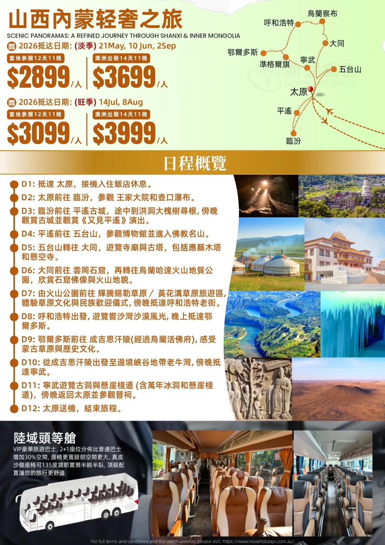 - 太原|臨汾|平遙|五台山|應縣|大同|雲岡|烏蘭察布|呼和浩特|鄂爾多斯|準格爾旗|寧武|太原