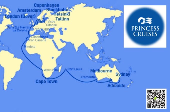 Princess Cruises ○ 悉尼Sydney — 伦敦London(英国) 56天55晚
