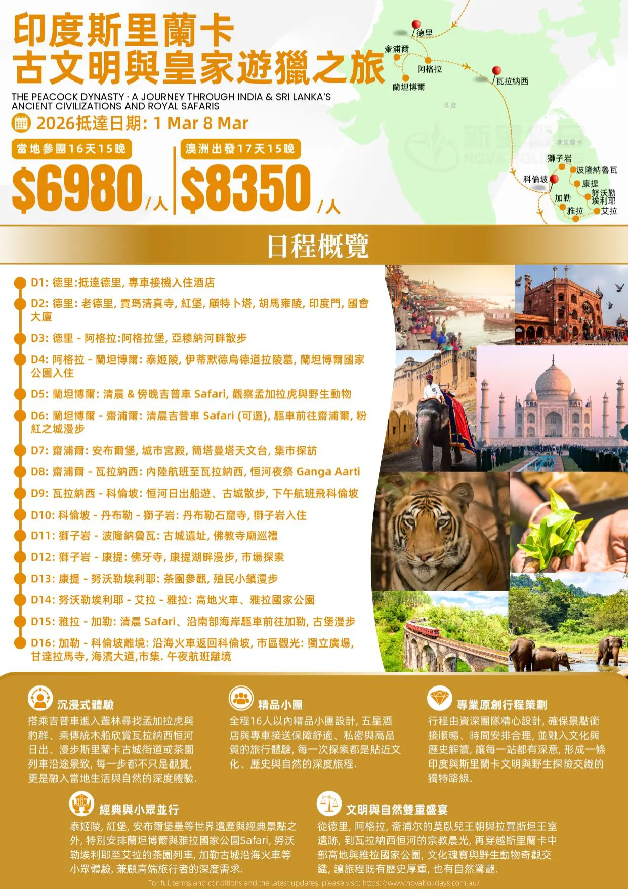出发日期: 2026年3月01、08日(澳洲出發或當地參團, 10人成團)