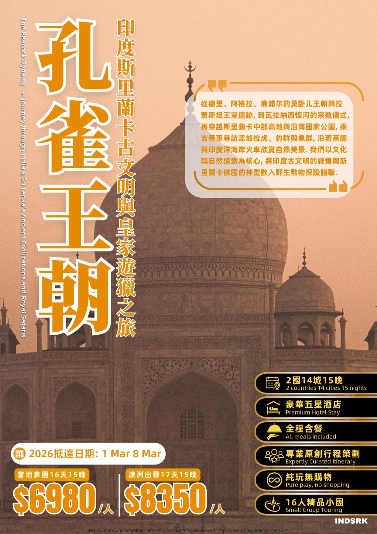 專業原創行程策劃:行程由資深團隊精心設計, 確保景點銜接順暢、時間安排合理, 並融入文化與歷史解讀, 讓每一站都有深意, 形成一條印度與斯里蘭卡文明與野生探險交織的獨特路線。