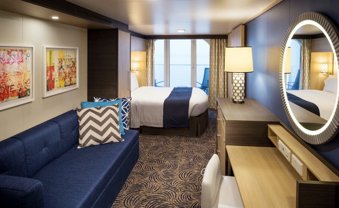 提供两张单人床(可拼成大号双人床),配有可观赏迷人海上景观的私人阳台,沙发床起居室, 配有淋浴、吹风机与梳妆区的私人卫生间及电视、收音机、电话、迷你冰箱 。 所有舱房内均提供电热水壶、毛巾、香皂、沐浴露、洗发露、一次性拖鞋。