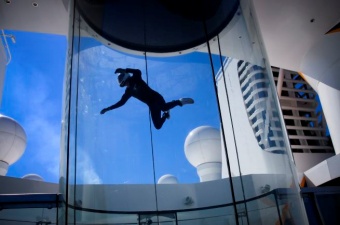 通过垂直的风洞产生气流,让想尝试极限运动的您体验在游轮上垂直降落的刺激和跳伞的快感。